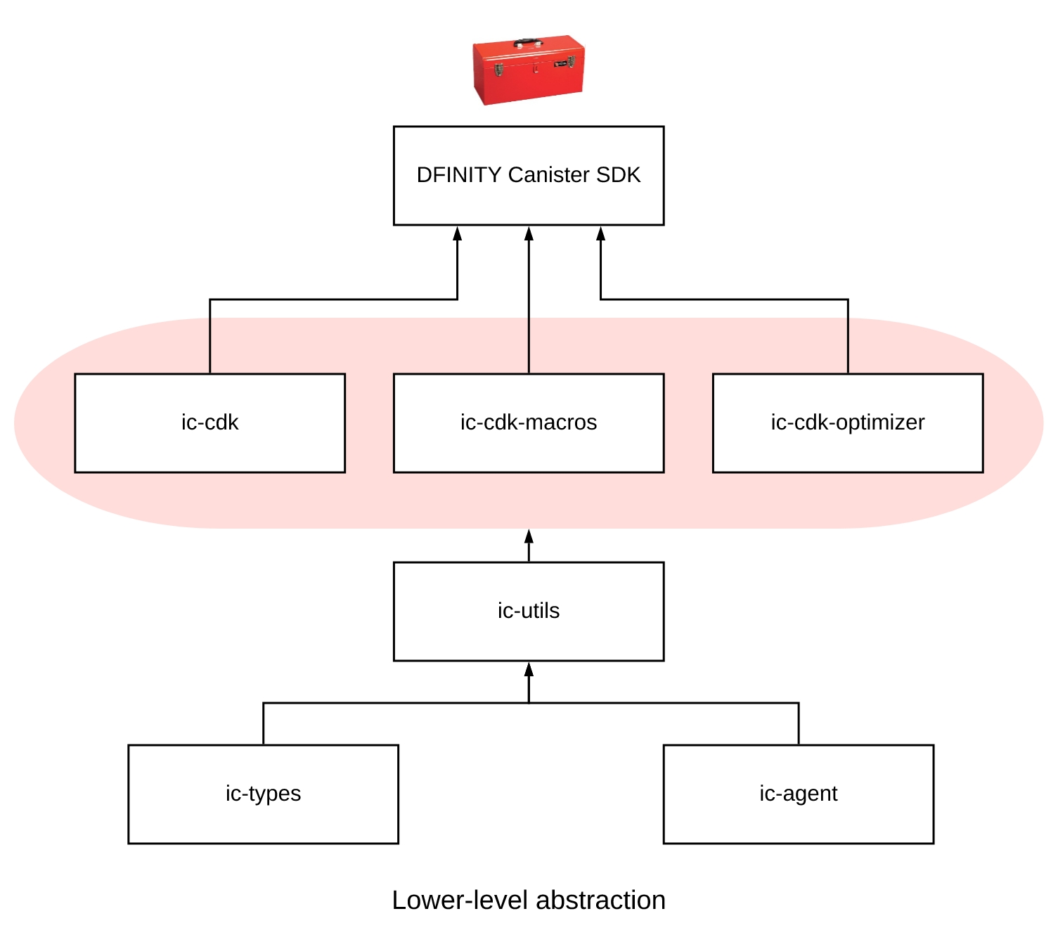 这些工具就是用于支持Rust的DFINITY Canister开发套件(CDK),包括以下主要库: